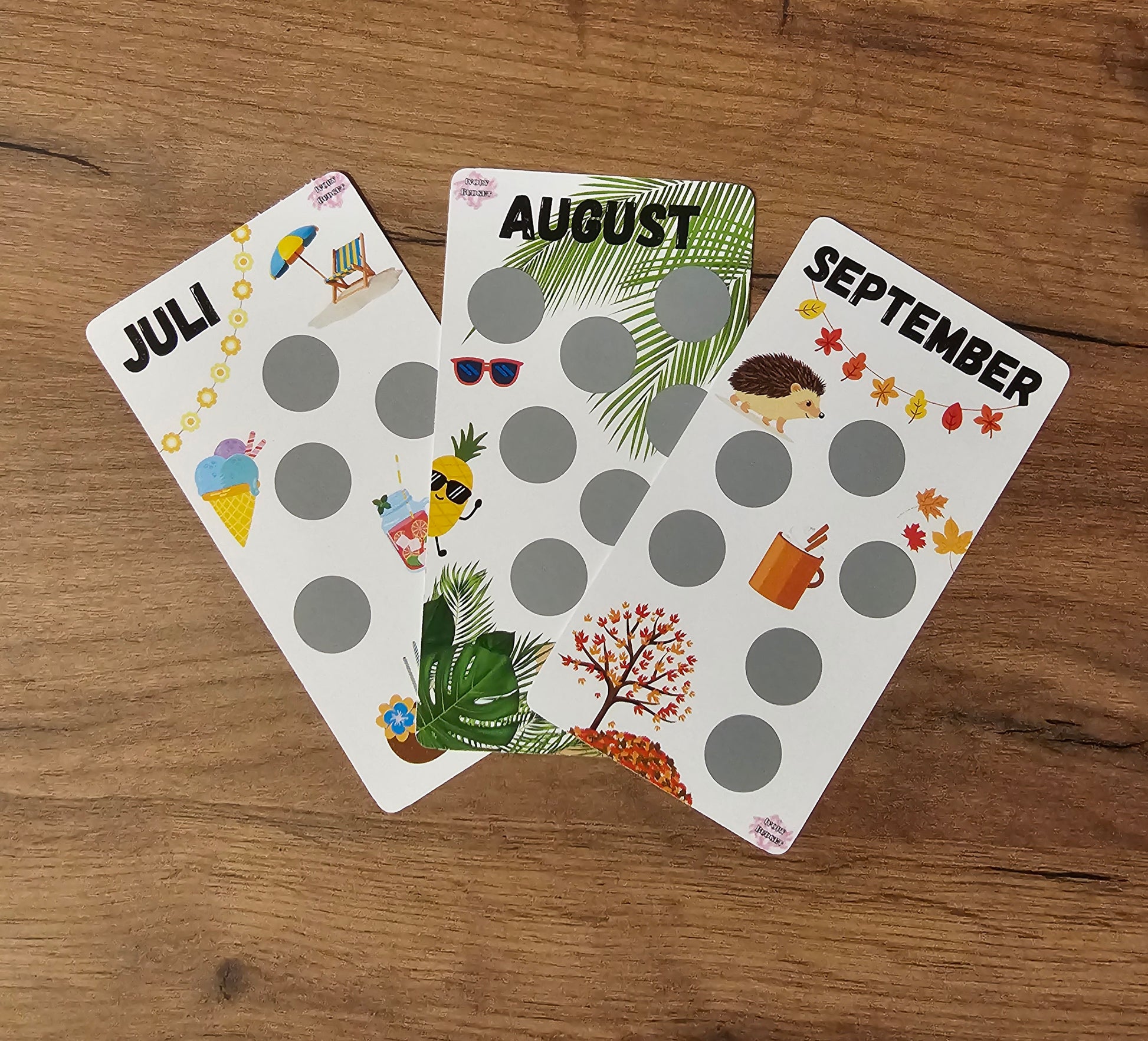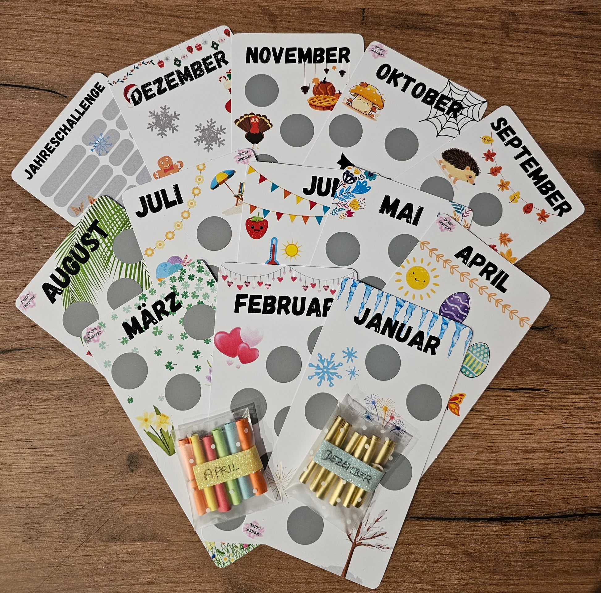 Es sind alles Rubbelchallenges, außer April, Juni und Dezember.