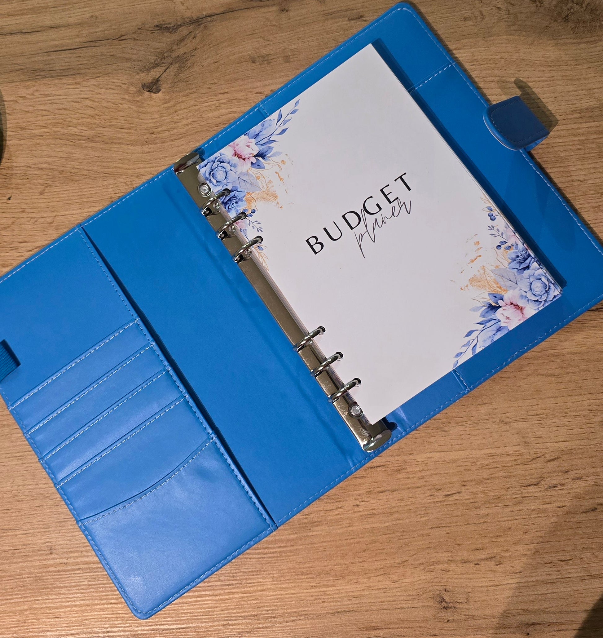 Du kannst den Budget Planer mit einer Spiralbindung oder mit dem passenden Binder in A5 (Der Binder hat einen Magnetverschluss und passende Taschen für Challenges etc.) bestellen.