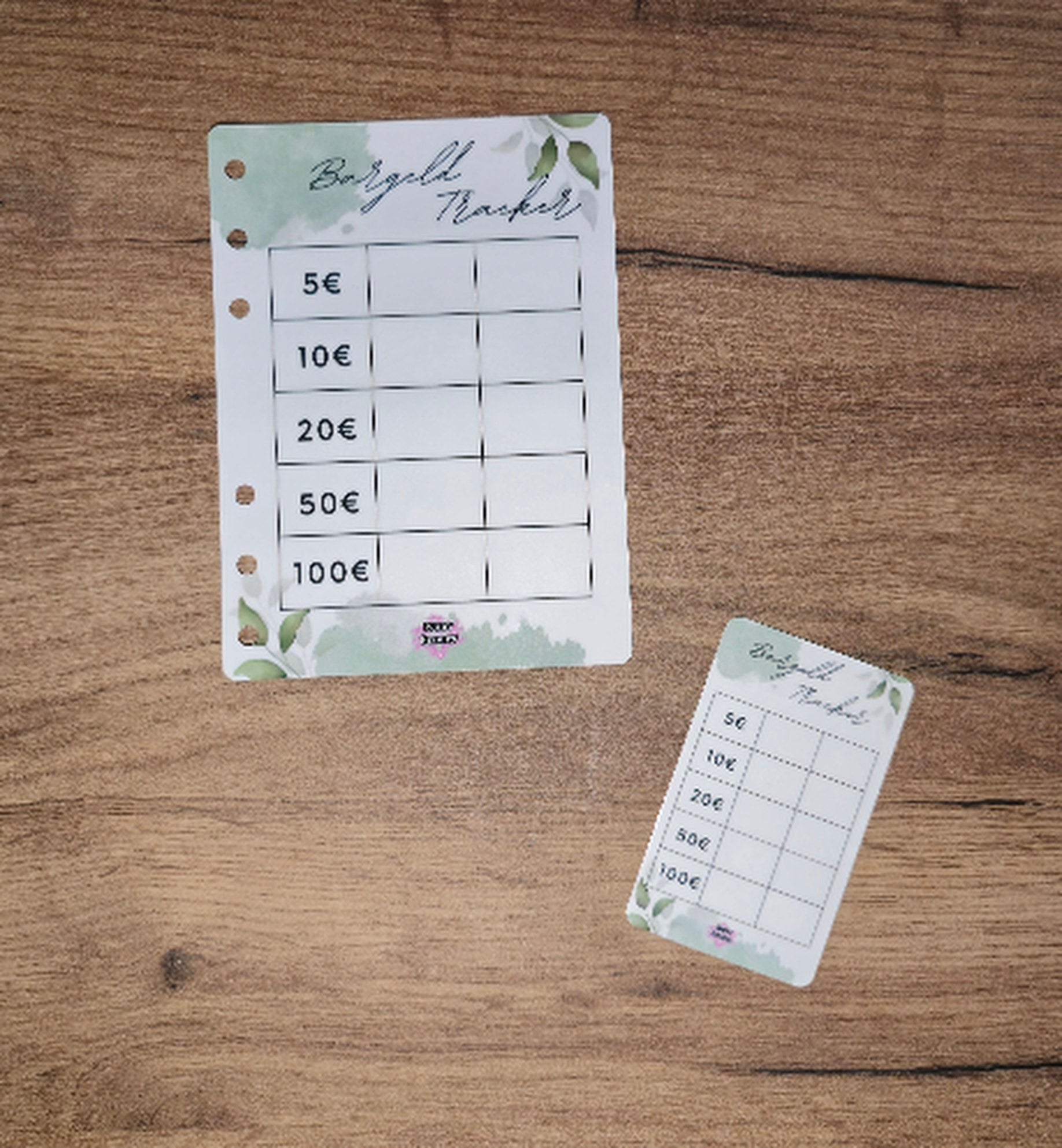 Es gibt den Bargeld Tracker in praktischen Kreditkarten Format oder als A6 Größe gelocht für deinen Binder.