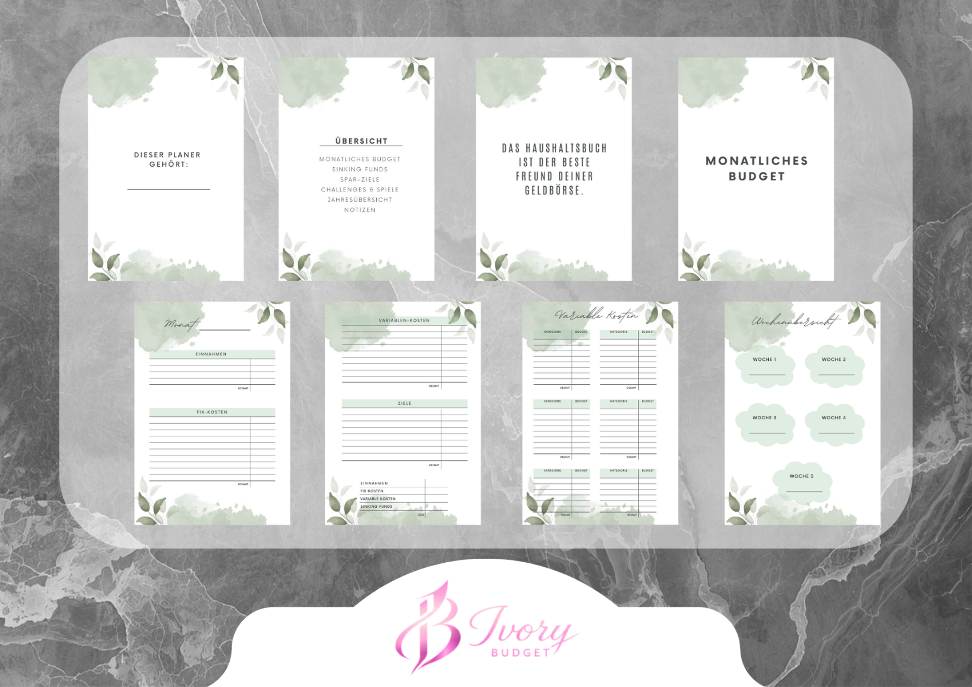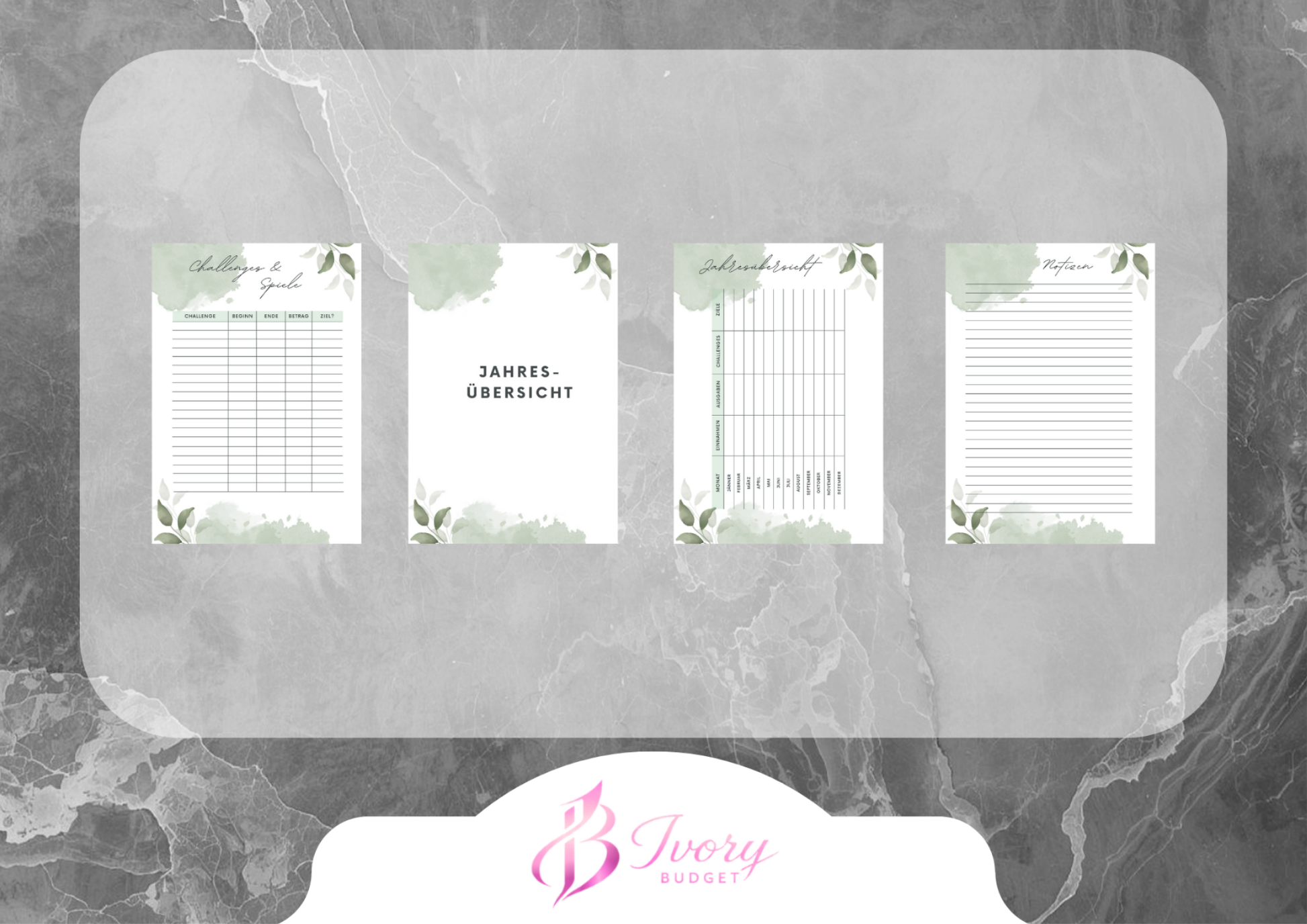 Erhalte einen von mir gestalteten Budget Planer um deine Finanzen im Überblick zu haben.
