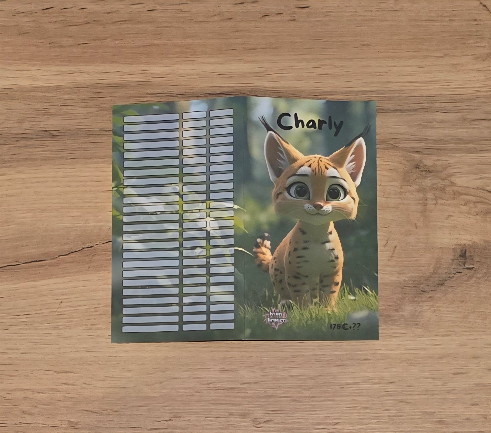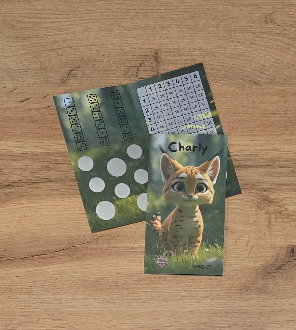 Spare mit der 2-seitigen Klappkarte in dem du das Bingo löst, Würfelst und Felder freirubbelst.