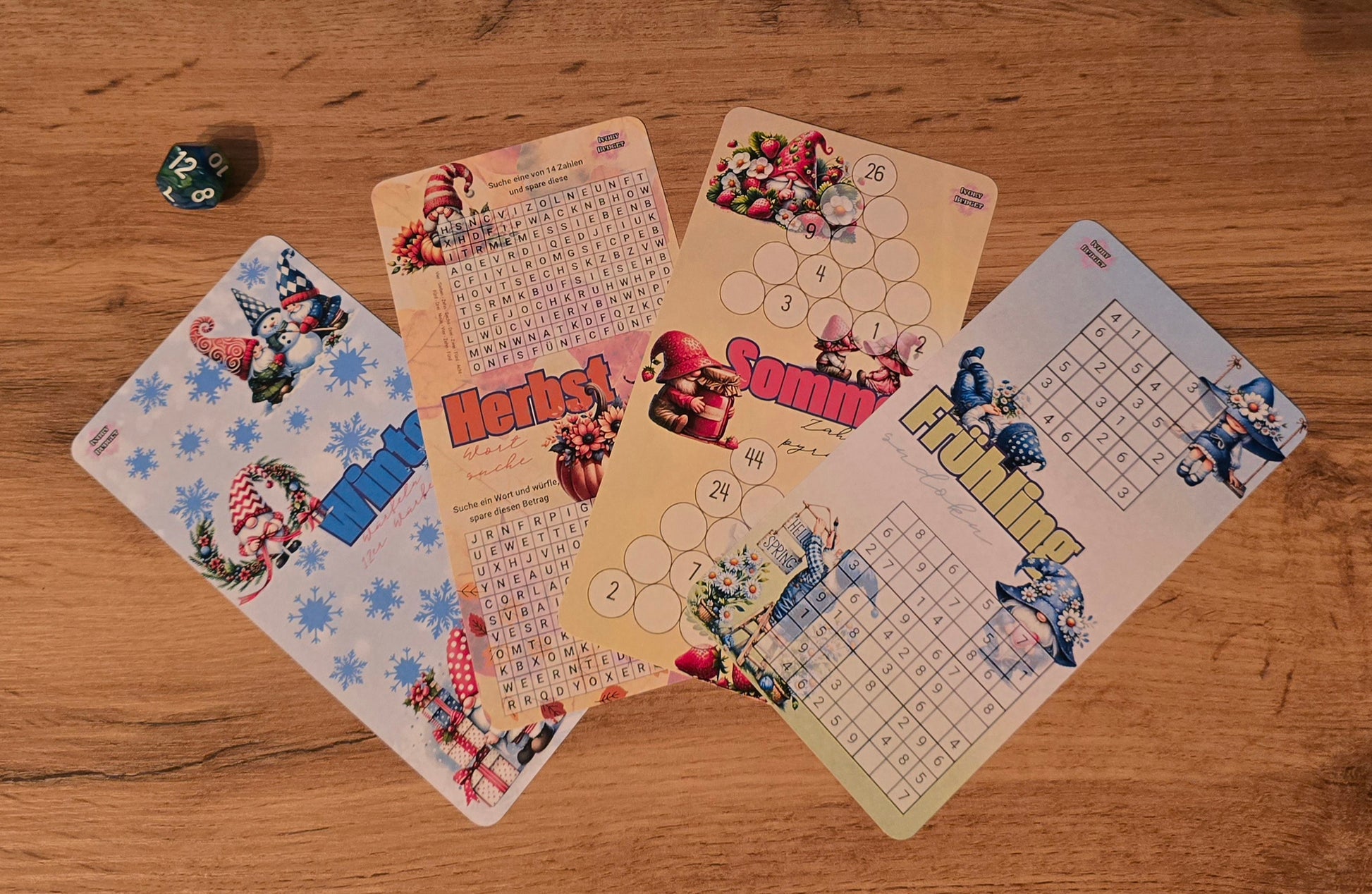 Spare in allen Jahreszeiten indem du Sudoku löst, rechnest, Wörter findest und würfelst, er 12-seitige Würfel ist inkludiert (Farbe ist Zufall)