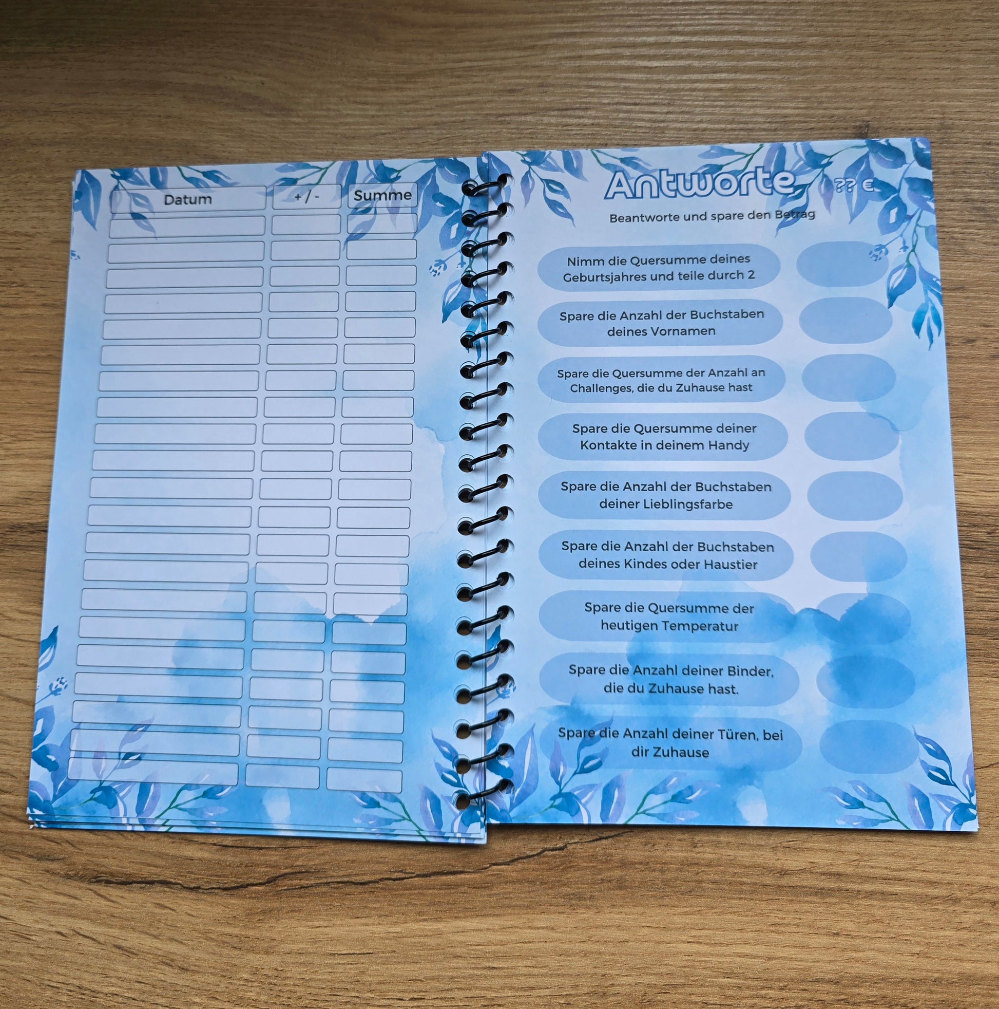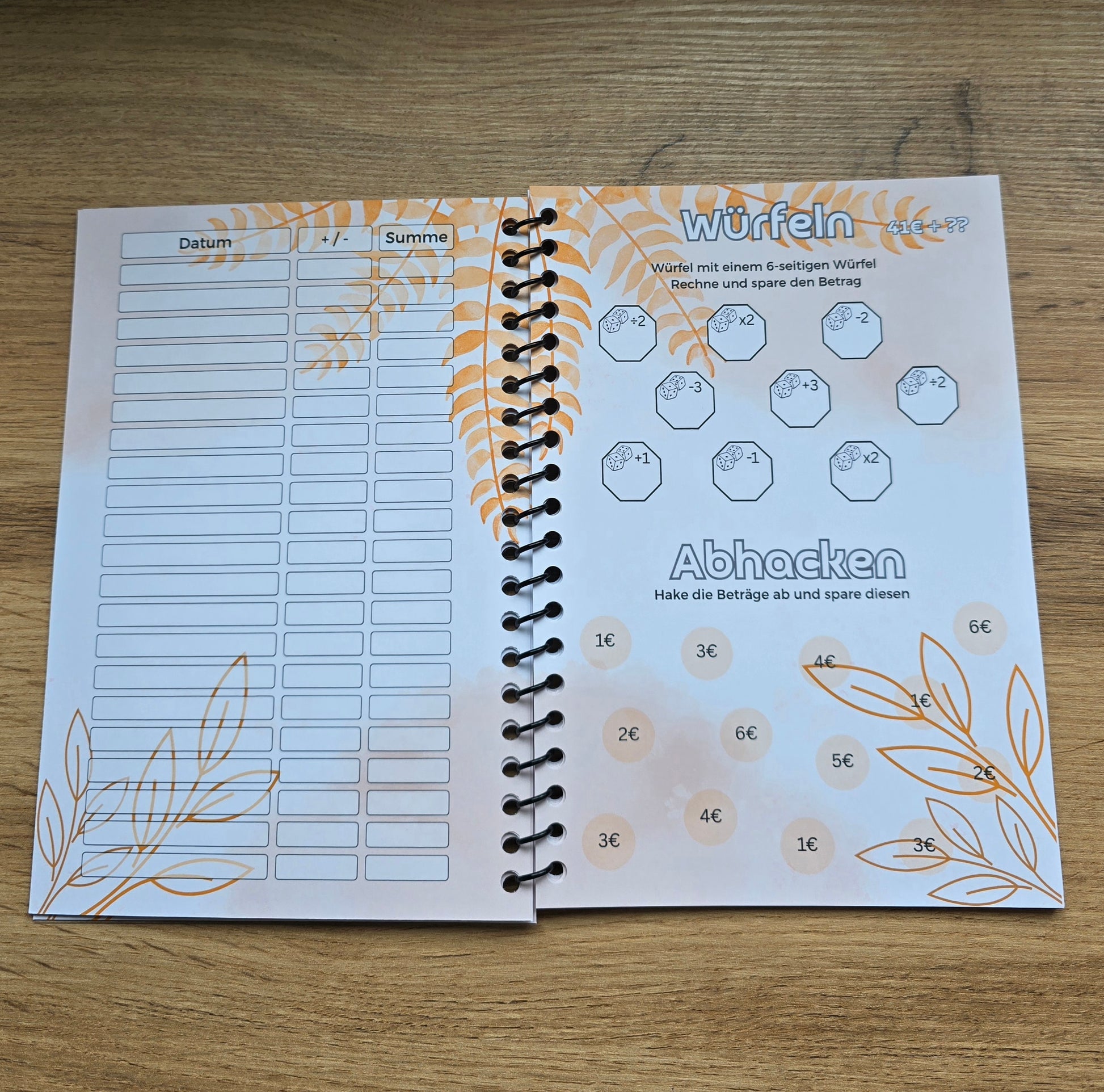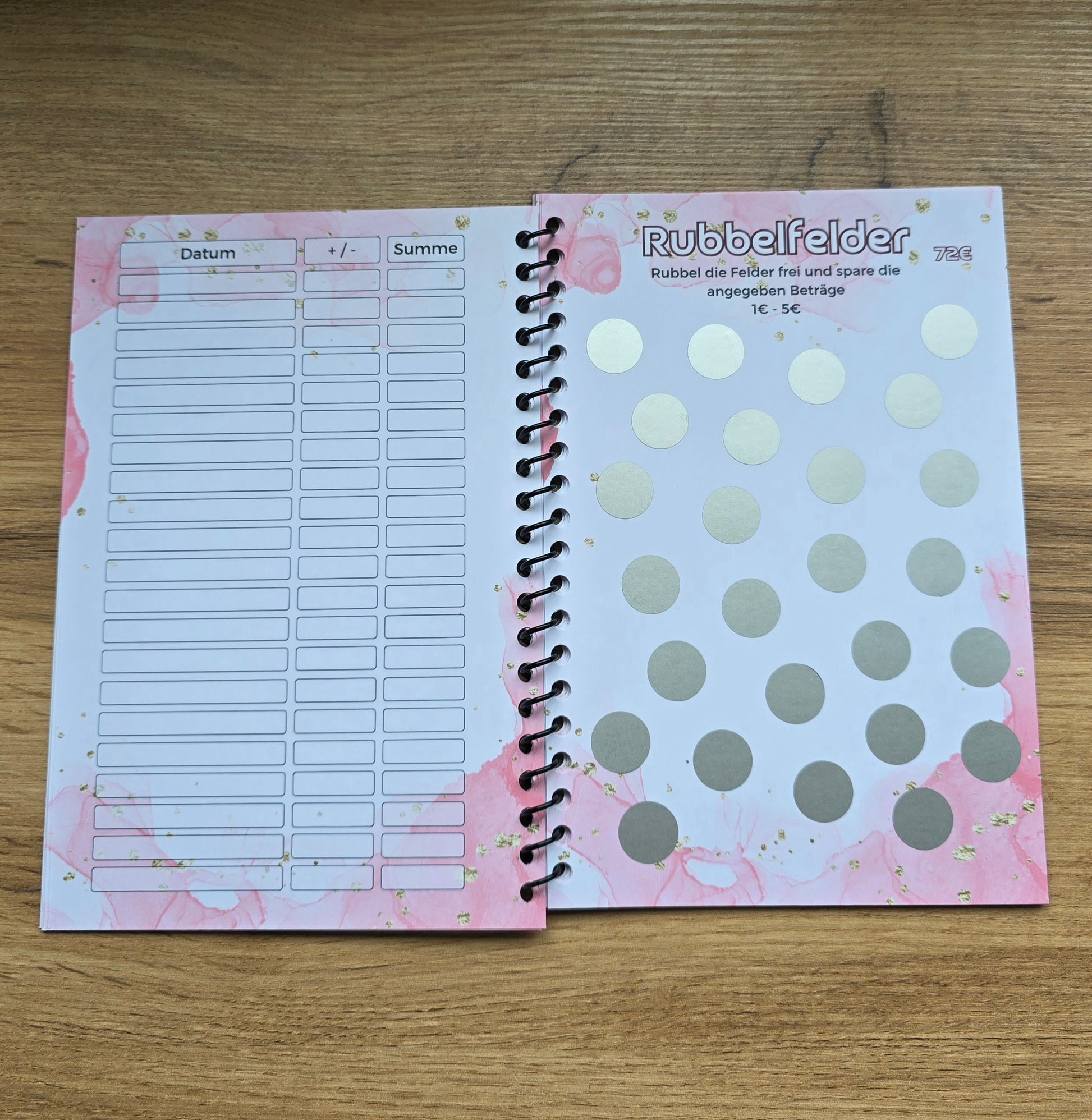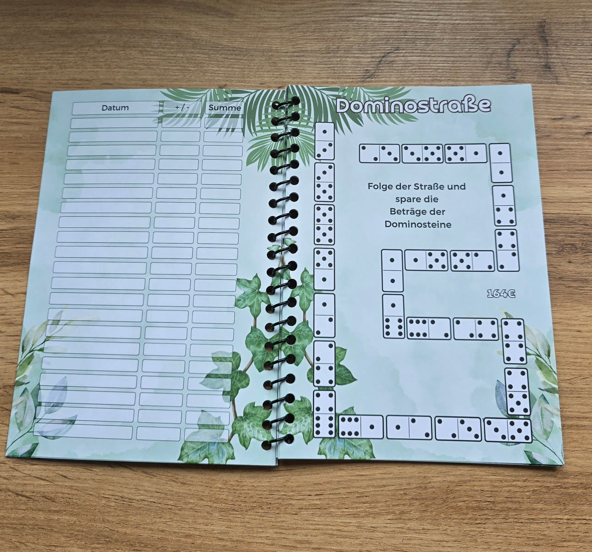 Es gibt einiges zu machen, Rubbeln, Würfeln, Lose ziehen, Ausmalen, Spardoku, Spar-Bingo, Abhacken, Geldsuche, Dominostraße, Antworten, 5€ Challenge und hinten sind zusätzliche Tracker und auch Platz für Notizen.