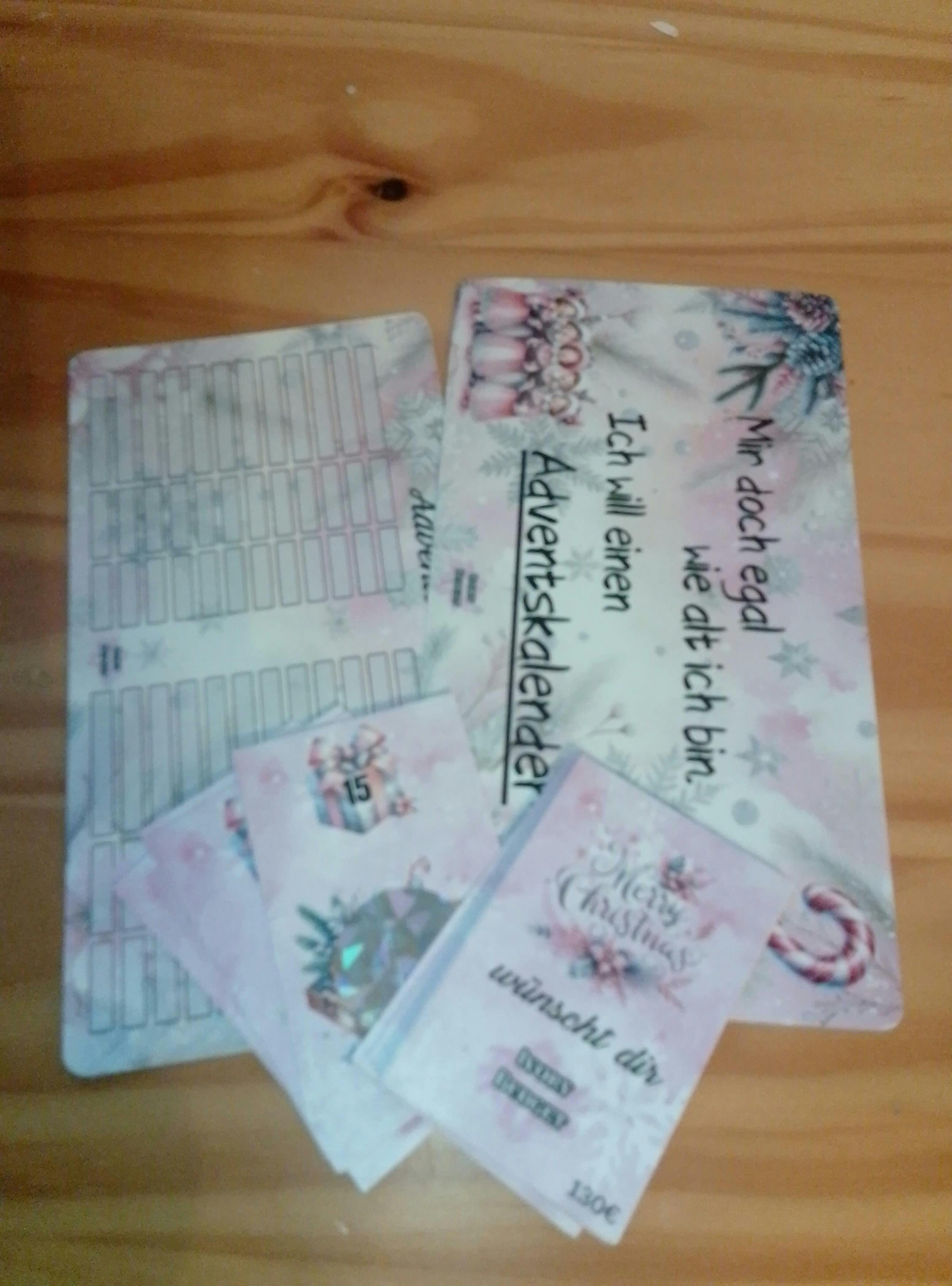 Du bekommst Mini Kärtchen von 1 - 24 mit einem Rubbelfeld inkl. einem Tracker und ein Deckblatt.